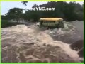 Xe bus đang làm xiếc trên dòng nước lũ chảy xiết chăng