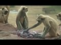 不動的機器間諜猴意外跌落,猴群們為一個無生命的嬰兒開始悲傷。